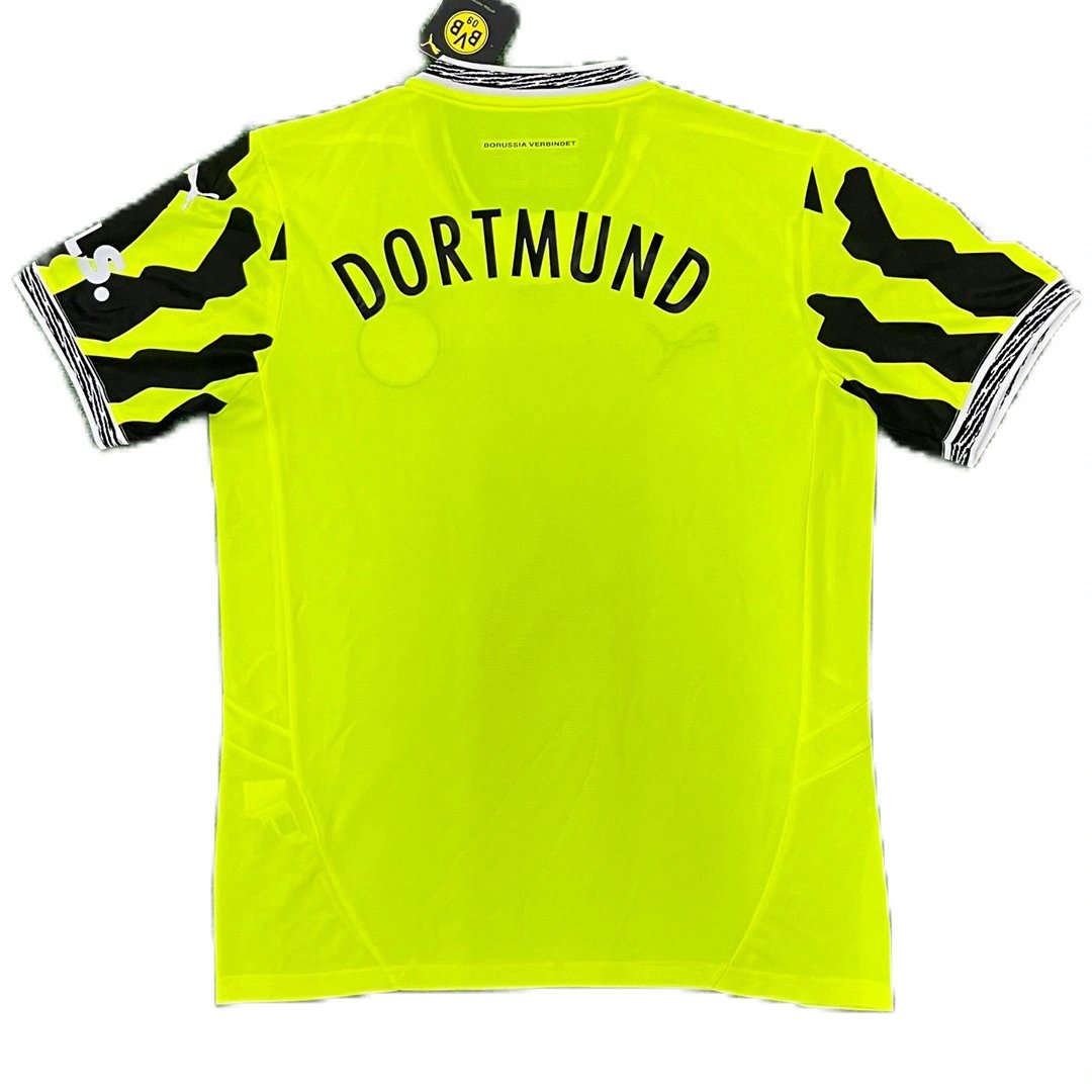 The BVB 2024-2025 special jersey is neon yellow (Yellow Alert) combined with black and white.